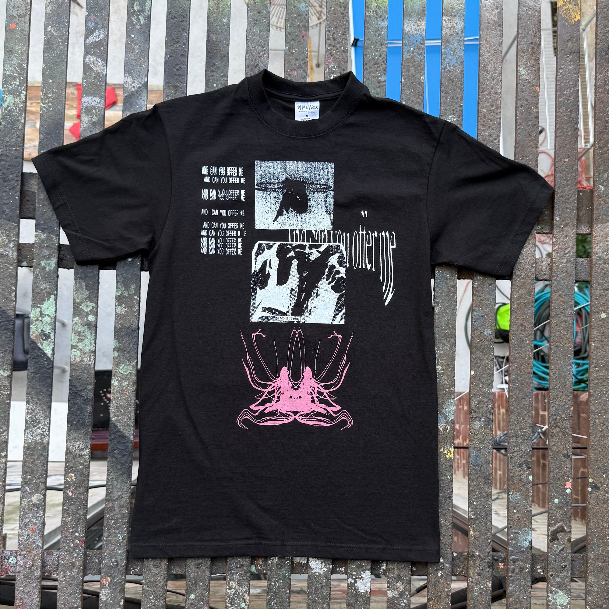+design details (front) - xeroxed screencaps of "birth of a cyborg" and spider tank duel," lotus flower interpretation of iconic Motoko image, xeroxed multi-hit letter-play of "and can you offer me"